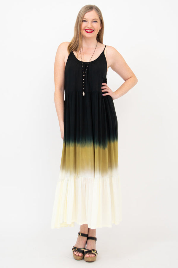 This lightweight, tiered maxi dress will be your go to for warm days and tropical vacations. The soft and light fabric is perfect for keeping you cool on those humid days. Adjustable straps, scoop neckline and pockets complete the look.