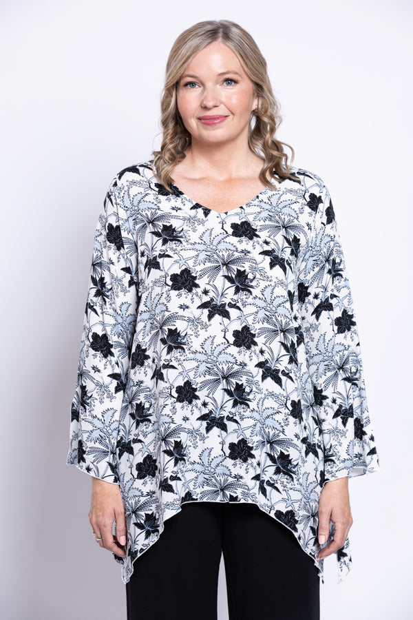 The Dorothy is the ultimate flowy bohemian top. V-neckline, belled sleeves and a shark-bite hemline complete the look. Pair it with leggings or a flowy pant for a cool vibe.