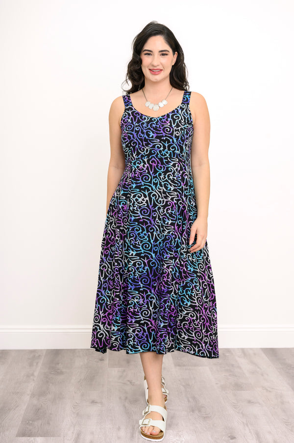 The Shauna is a true Blue Sky favourite. It features an empire waist, A-line skirt and pockets. The back of the bodice is shirred for a perfect fit and enhances all figures. The straps are ample for concealing your bra, so wear it alone or pair it with a shrug for more coverage.