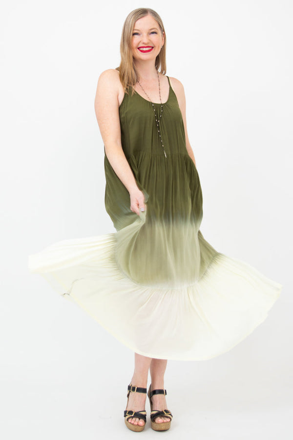 This lightweight, tiered maxi dress will be your go to for warm days and tropical vacations. The soft and light fabric is perfect for keeping you cool on those humid days. Adjustable straps, scoop neckline and pockets complete the look.