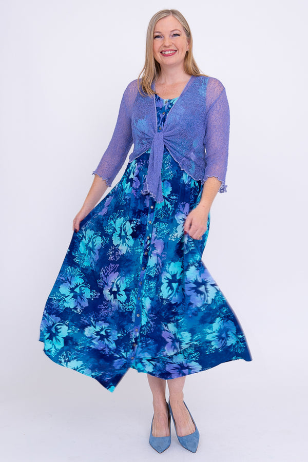 A go-to summer dress. Designed with a tank-style bodice and empire waistline. Tiny gathers for easy fit around stomach and hips - it's a great maxi style dress.