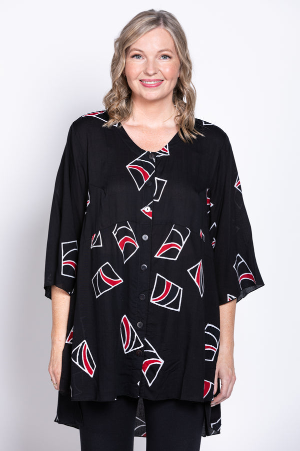 The Darla blouse is free flowing with the feel of a tunic. A high low hem with side slits, button front and princess seams at the bust add just enough detail to this amazing fabric.