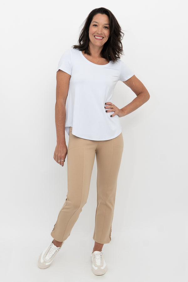 A modern take on a much-loved staple.  This cardigan is 100% cotton with a relaxed fit, generous pockets, single button enclosure and cropped sleeve.