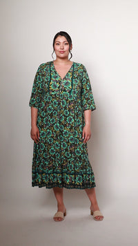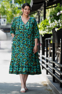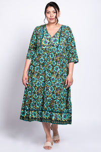 Oma is a beautiful light weight midi length batik dress that will take you from day to dinner.  Perfect for those warm sunny days on a staycation or vacation.