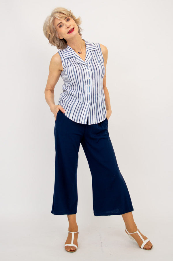 A Capri version of our best-selling Landon Pant. This easy pull on pant features a wider leg from hip to hem. The bamboo waistband can be worn high or folded over.