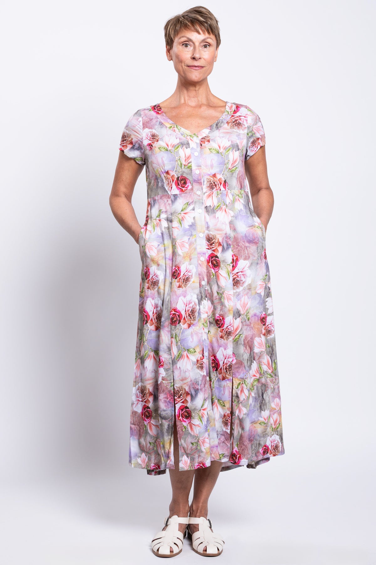 Morgan is one of our top sellers for a reason. This classic cut features princess seams with buttons down the front. This shapely design features a cap sleeve and two slits front and back which allow the dress to flow seamlessly while you move.