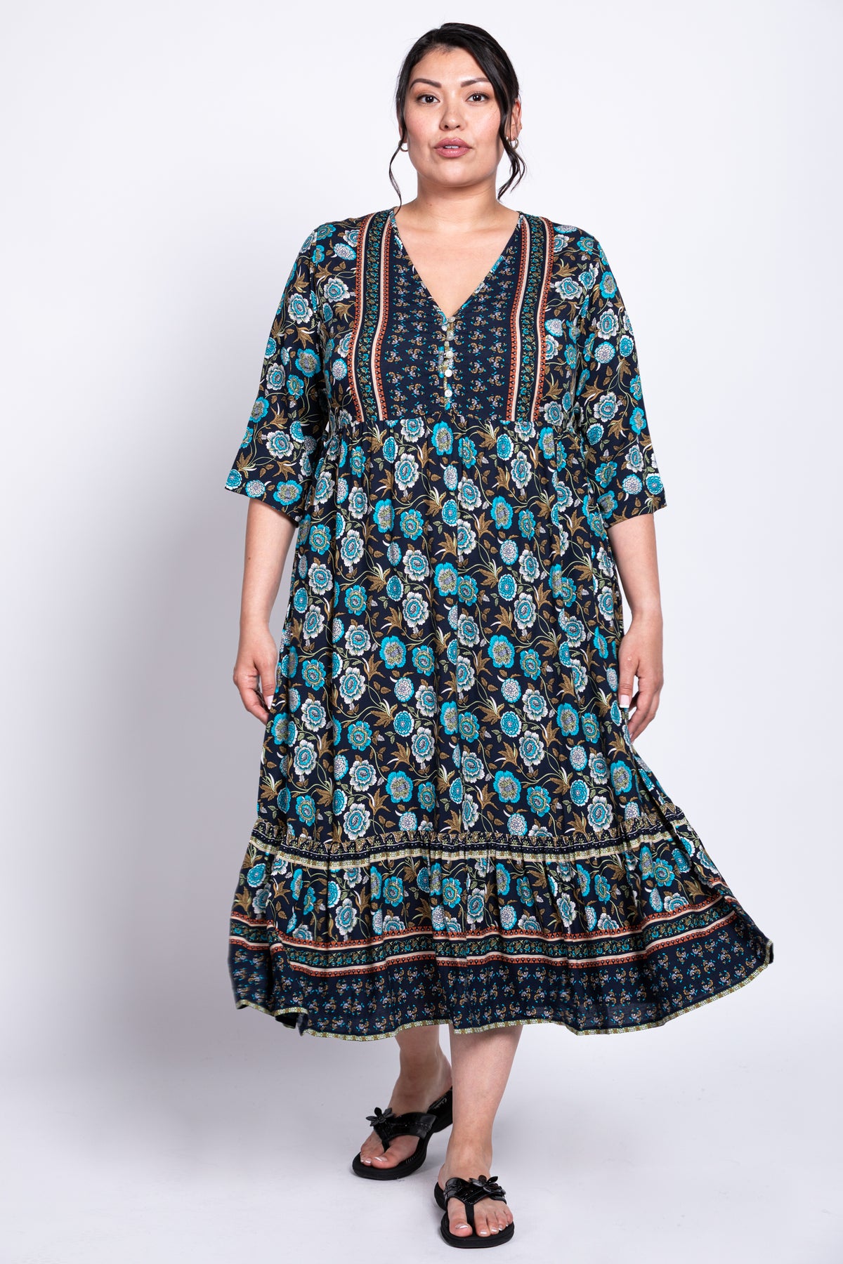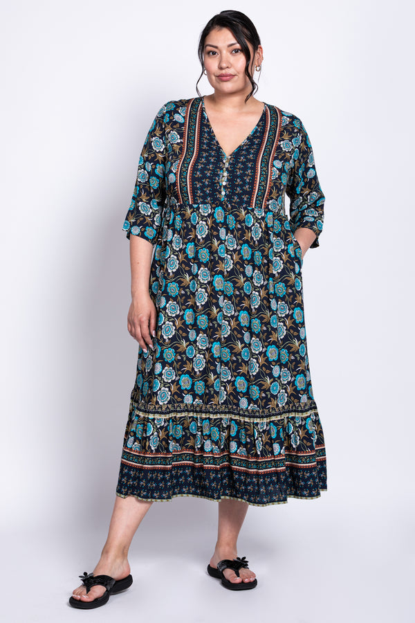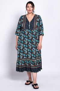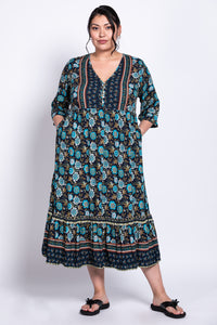 Oma is a beautiful light weight midi length batik dress that will take you from day to dinner.  Perfect for those warm sunny days on a staycation or vacation.