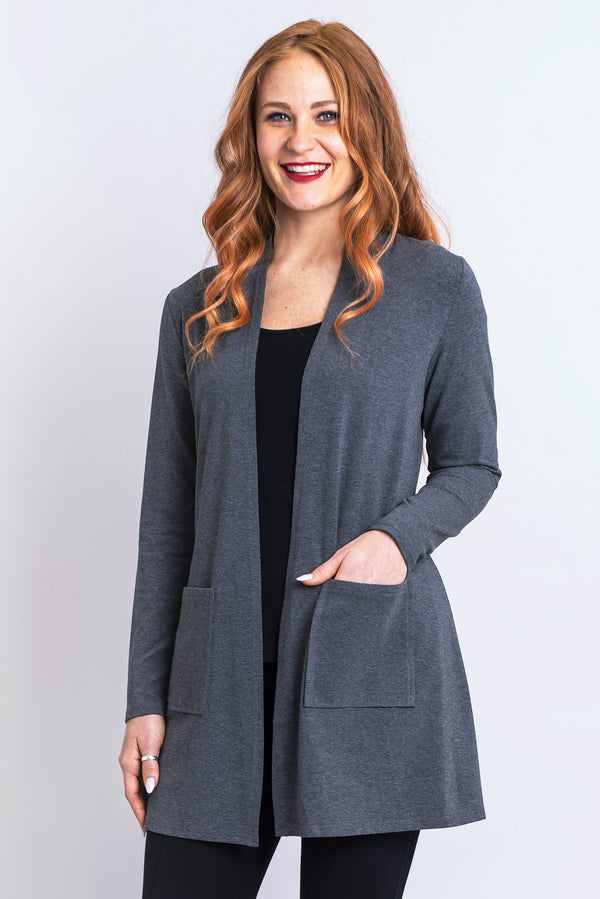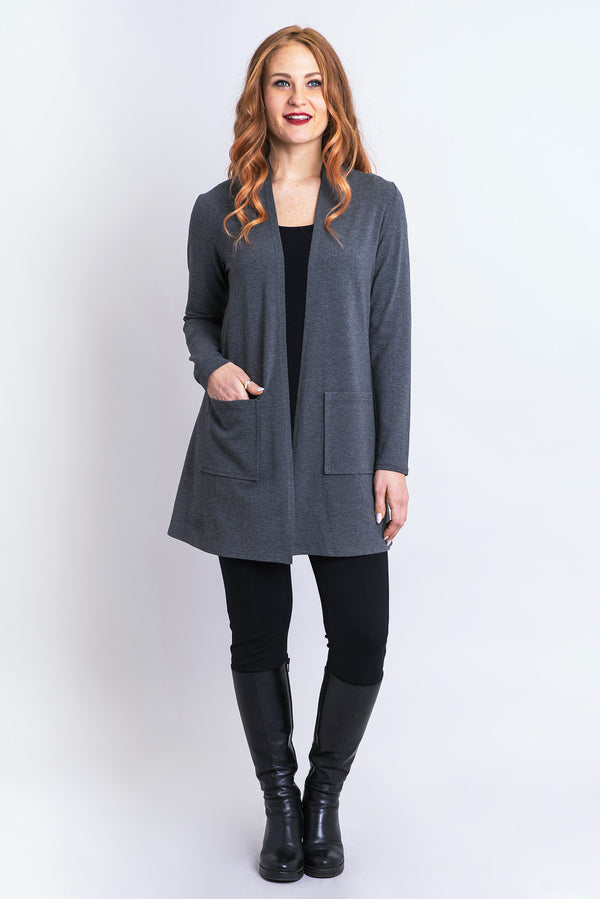The Pauline is a lightweight jacket that is perfect for layering. It has a true fit in the shoulders for a clean finish and then falls to the thigh for coverage. Patch pockets and breathable fabric make this a staple for any wardrobe.