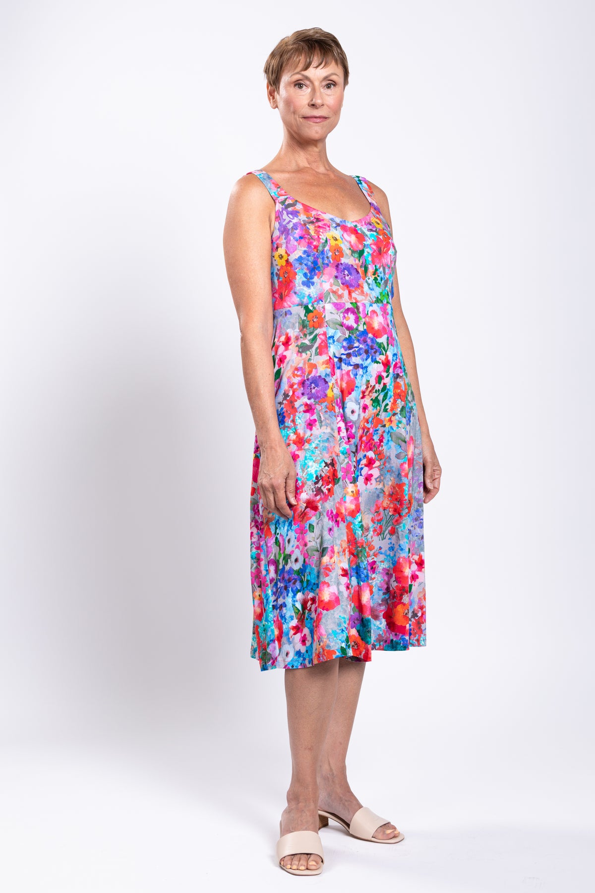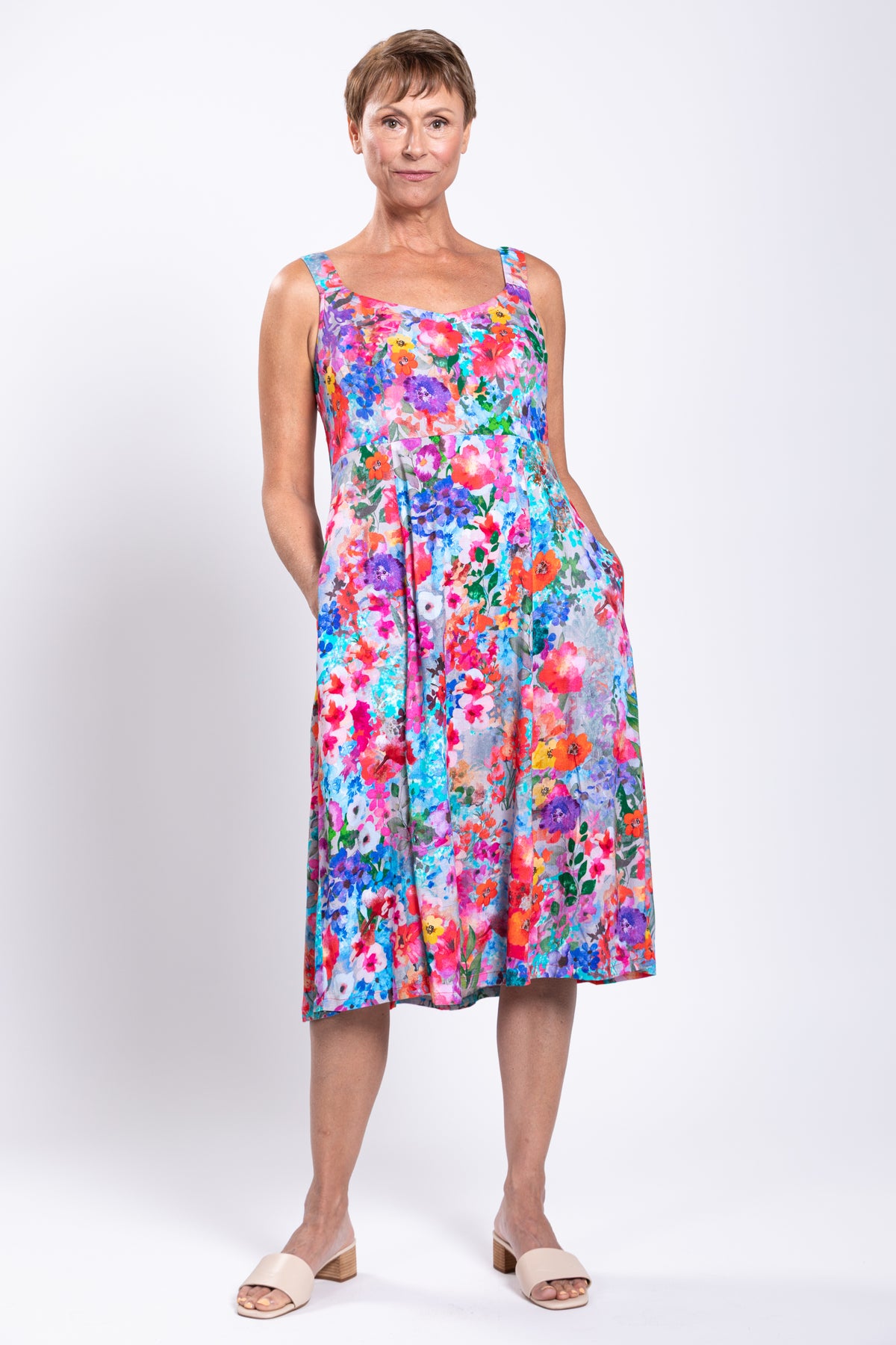 The Shauna is a true Blue Sky favourite. It features an empire waist, A-line skirt and pockets. The back of the bodice is shirred for a perfect fit and enhances all figures. The straps are ample for concealing your bra, so wear it alone or pair it with a shrug for more coverage.